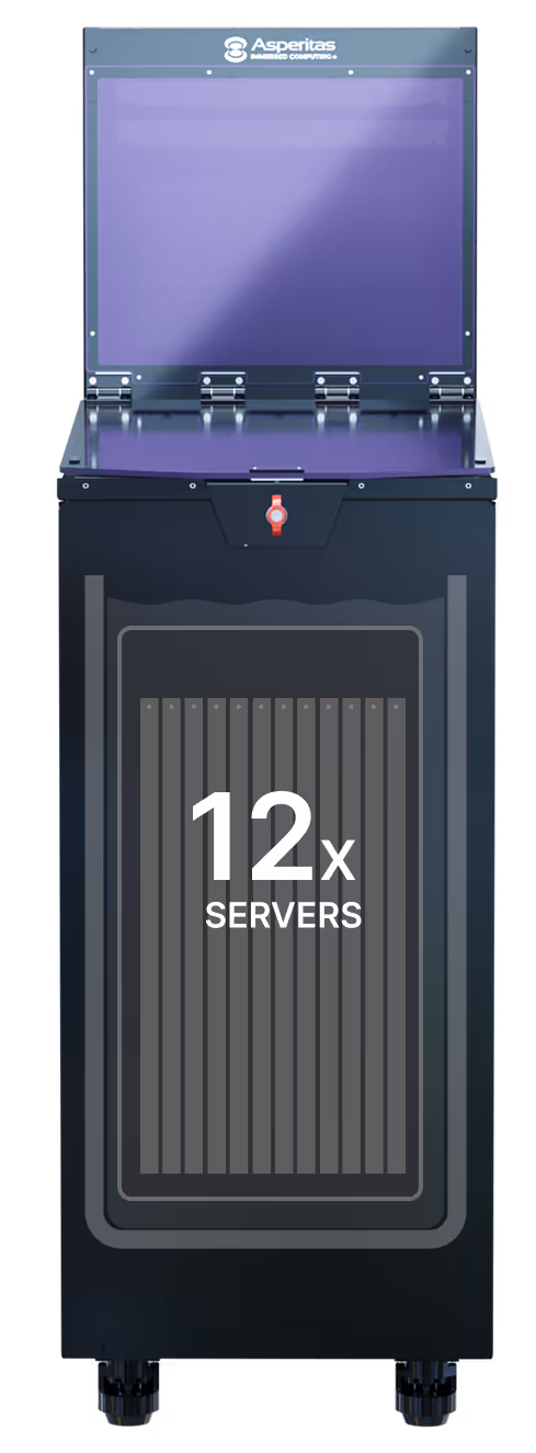 The unique Asperitas liquid cooling technology concept, Immersed Computing®, enables sustainable and high density datacentres anywhere they're needed to run your applications. Our fully integrated, contained and liquid cooled solutions include fully immersed application centric server platforms optimised for synergy and performance. Immersed Computing® enables record breaking densities, warm water cooling and performance boosting of platforms.